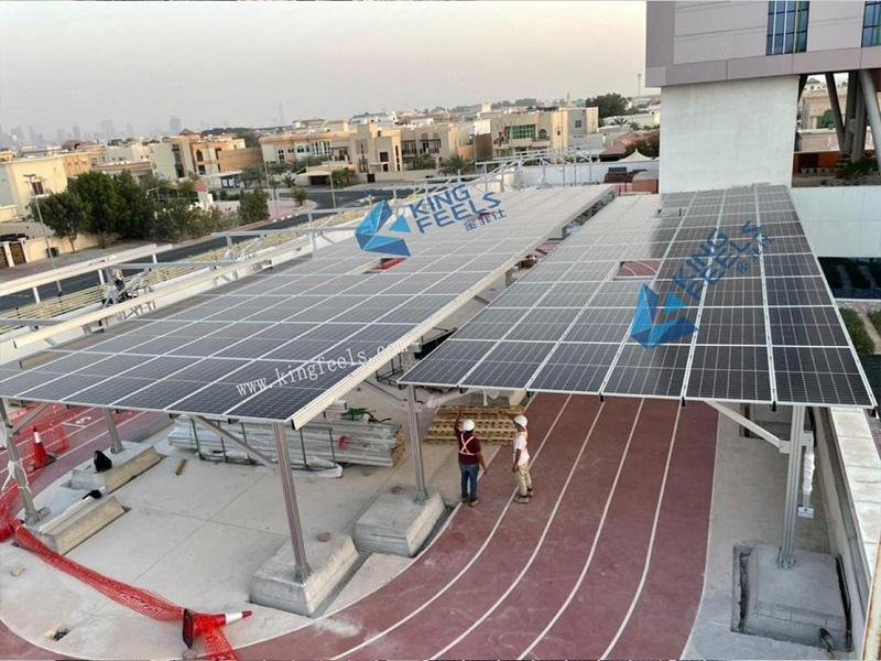 De montagestructuur is de ondersteunende structuur die de zonnepanelen of arrays van zonnepanelen op de grond houdt.